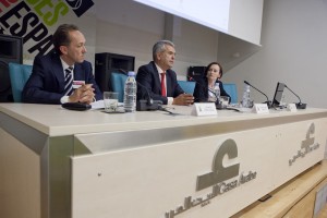 De izquierda a derecha: el director de la Escuela de Traductores de Toledo, Luis Miguel P. Cañada, junto al director general de Casa Árabe, Eduardo López Busquets, y la profesora de la Universidad de Murcia Victoria Aguilar.
